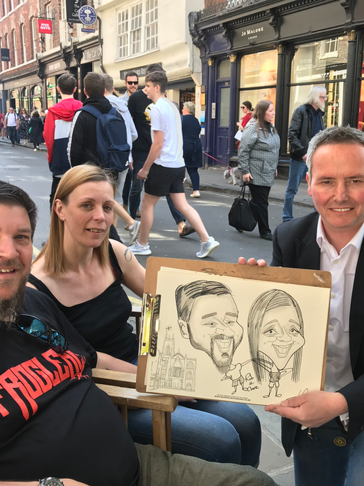I have over 30 years experience drawing live caricatures at functions in the Yorkshire area. You can hire me for private events like weddings, birthdays and other parties or corporate events such as trade shows, Christmas parties and retirement celebrations. Corporate clients include the BBC, Virgin Media, Asda and the Prince's Trust.
